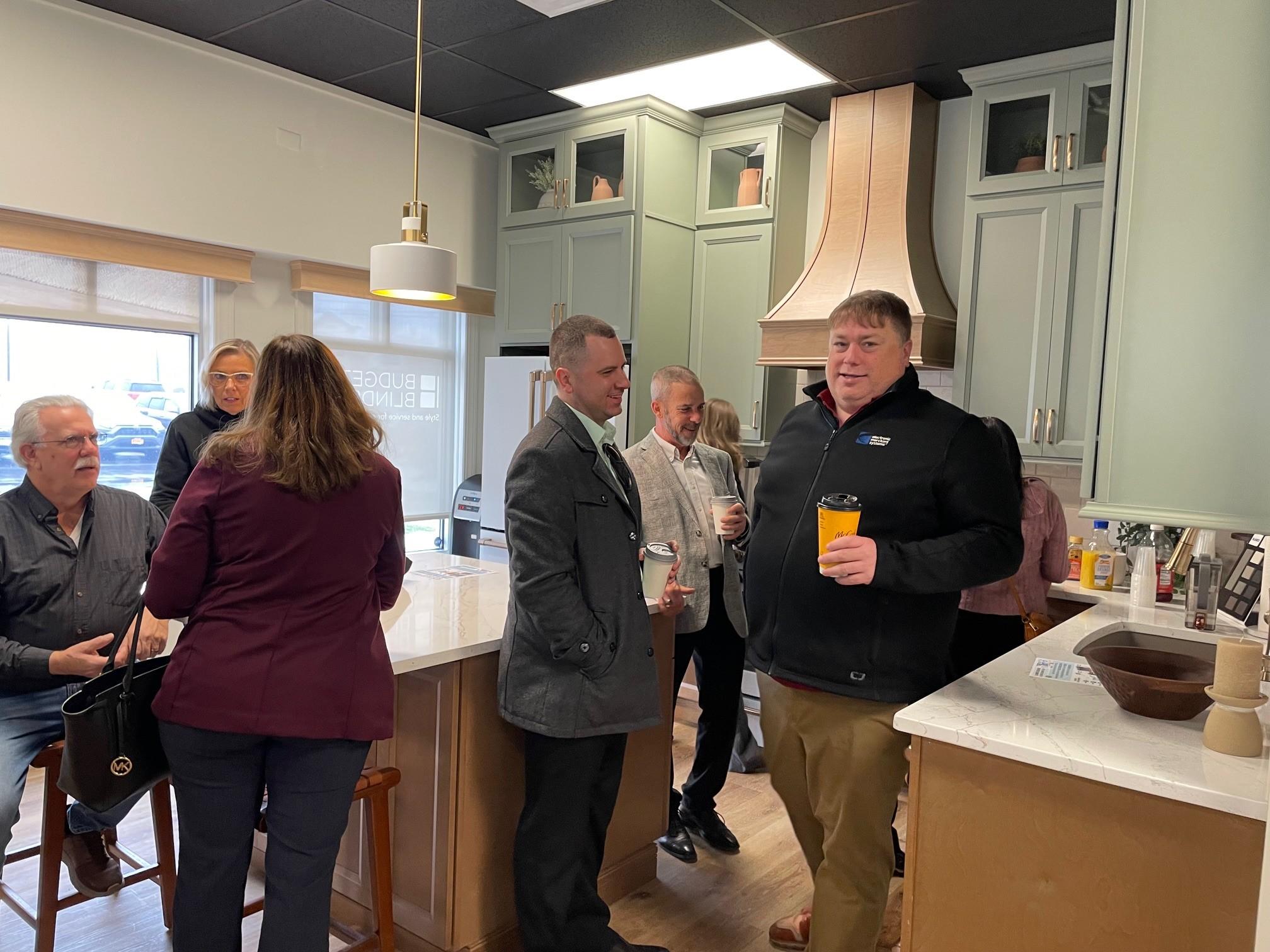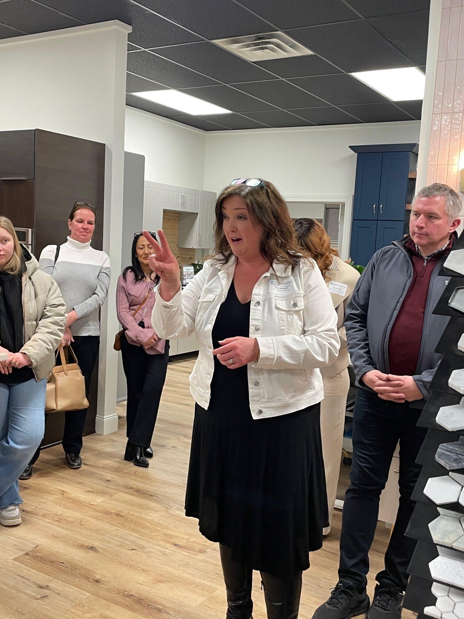 Host and owner Jessi Chichelli welcomed the group, offering a tour of the sophisticated space that houses two powerhouse home improvement brands under one roof. For Chamber members looking for reliable partners in the residential or commercial property sectors, the showroom offered plenty of “design envy” through its meticulously crafted displays.